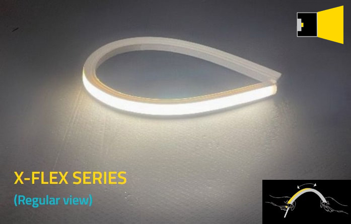 • X-FLEX WATER 16x16 mm – Emissione omogenea della luce e uscita verticale rispetto al lato di piegatura.