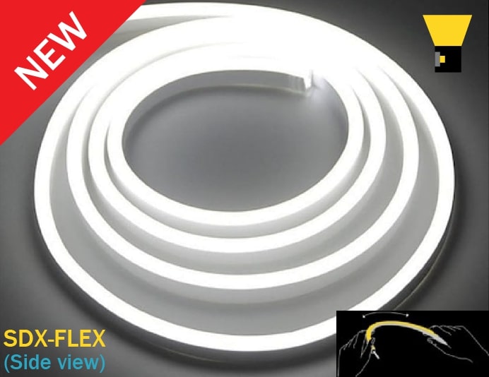 • SDX-FLEX WATER 16 x 16 mm - Emissione della luce orizzontale rispetto al lato di piegatura